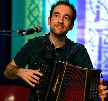 Le fondateur de Nostrad compose le menu et arpente les Bals pieds nus. Il nous propose des mélodies entrainantes, s'inscrivant dans un répertoire Néo-Trad créatif. Vincent manie l'Accordéon comme personne et nous offre un jeu maîtrisé et joyeux.