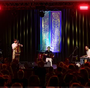 Nostrad est un trio atypique Accordéon Diatonique, Harpe Historique et Percussions, formé par Vincent Garcia, Mikaël Herrou et Kevin Allain. Depuis sa création en 2013, le groupe a testé de nombreuses configurations, passant de quatuor à quintet, pour finalement vous proposer aujourd’hui une formule en trio avec l’arrivée de Mikaël. Signifiant au choix néo-Trad ou bien son-Trad, Nostrad c’est l’addition : • d’une mélodie mélangeant des thèmes Traditionnels ainsi que des compositions récentes à la fois douces et entraînantes ; • d’une rythmique percutante servie par un set de percussions éclectique ; • sans oublier une harmonisation colorée rendue possible grâce à la présence d’une harpe historique, instrument ressuscité par la famille Herrou ; le tout faisant de Nostrad une proposition musicale originale sur la scène Bretonne ! Avec plus d’une centaine de dates et un deuxième album paru en 2024, Nostrad dispose d’une bonne expérience de la scène afin de vous entraîner sur des airs à danser de Bretagne et d’ailleurs…